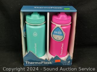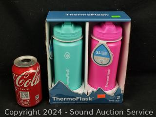 Lot #0184: 2 ThermoFlask 16oz Vacuum Insulated Steel Travel Bottles