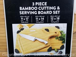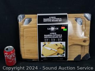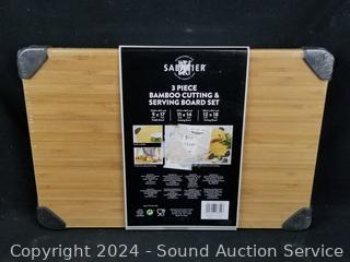 Lot #0190: 3pc Sabatier Bamboo Cutting & Serving Board Set