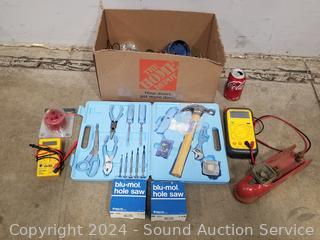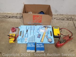 Do It Herself Tool Set, Multi-Meters, Blu Mole Hole Saws, Nuts/Bolts, Hitch, Balls. Refer to photos for more details.