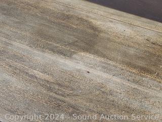 Contrasting finish. 29.5" H x 60" L x 18" W/D. Some fading on the top, minor scuffs in finish.