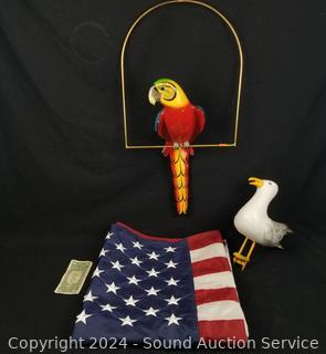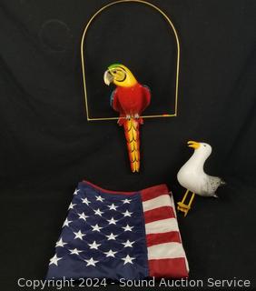 Lot #0043: Hanging Parrot, Seagull & 3ft x 5ft Nylon American Flag