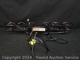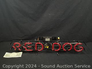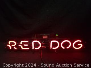 Appears to be functioning as intended. Some of the black finish is coming off and letting red light through. 6" H x 26.5" L x 5.5" D.