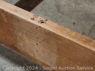 Some scuffs, paint residue. 22" to 36" H x 42" W x 75" long rails.