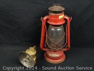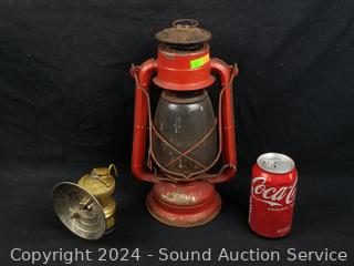 Lot #0049: Vintage Universal Auto-Lite Miners Lamp & Jupiter #2 Barn Lantern
