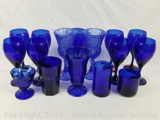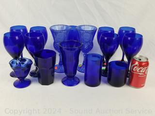 Lot #0096: 15pc Cobalt Stemware Glassware