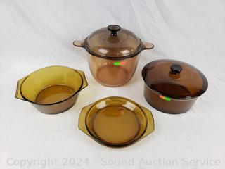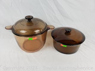 Lot #0152: 2 Arcopal France & 1 Pyrex Visions Glass Cookware w/Lids