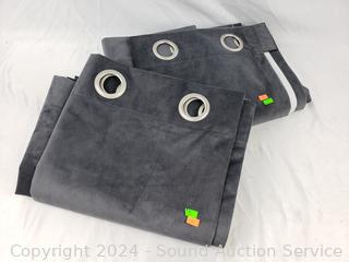 Lot #0225: 2 Grommet Panel 52" x 84" Gray Velvet Total Blackout Curtains