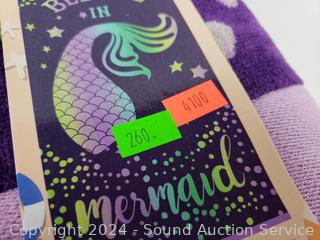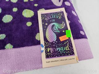 Lot #0260: 2 Purple "Believe in Mermaid" Cotton Bath Towels