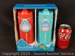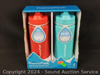 Lot #0328: 2 ThermoFlask 16oz Vacuum Insulated Steel Travel Bottles