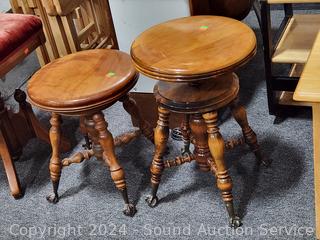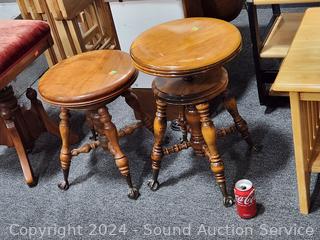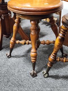 Lot #0028: 2 Vintage Ball & Claw Foot Swivel Height Adjustment Stools