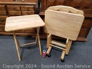 Lot #0018: 4 Folding Wood TV Trays w/Stands