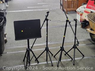 Lot #0070: 3 On Stage Microphone & 1 Sheet Music Stands