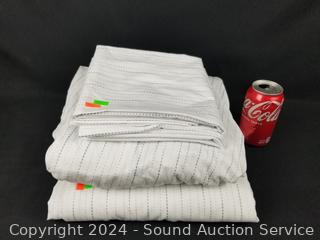 1 flat, 1 fitted, 2 pillowcase. Flat sheet has a small stain, don't see any other issues.