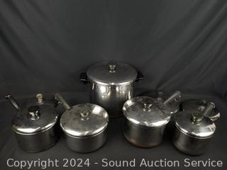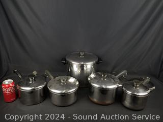 Lot #0196: 5 Revere Ware Stainless Pots w/8 Lids