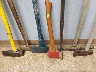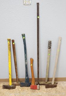 Lot #0297: 7pc Hatchet, Splitting Axes, Digging Bar, Sledge & Railroad Spike Hammers