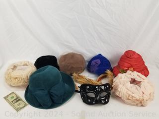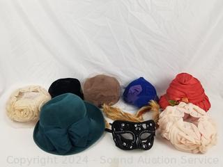 Lot #0103: 8pc Fancy Ladies Headwear & Masquerade Mask