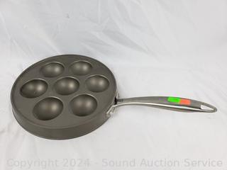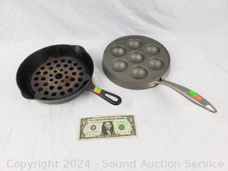 Lot #0163: 9" Griswold Cast Iron Skillet, Trivet, Nordic Ware Ebelskivers Pan