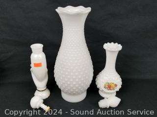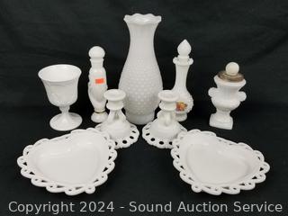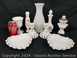 Vase, lamp chimney, candleholders, heart dishes, bottles. refer to photos for more details.