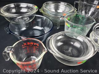 Lot #0159: Assorted Pyrex Measuring Cups, Baking, Storage Dishes