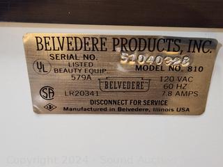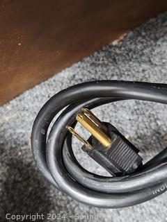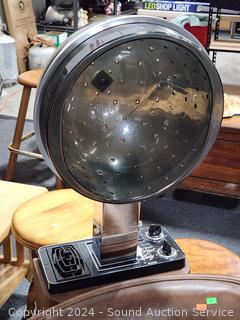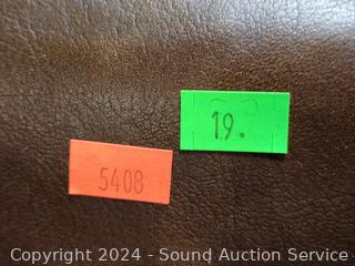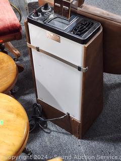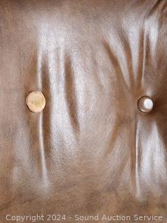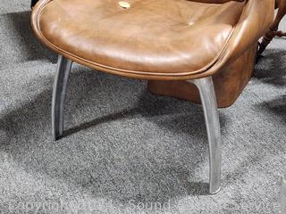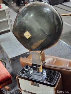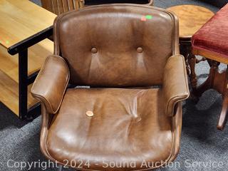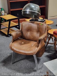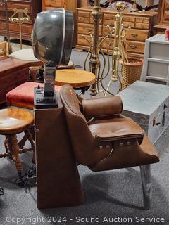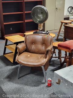 Pulled from the home working. Some tape residue on legs, left arm rest has a small hole in vinyl, don't see any other issues. Model No. 810. Overall 50" H x 24.5" W x 16" to seat.