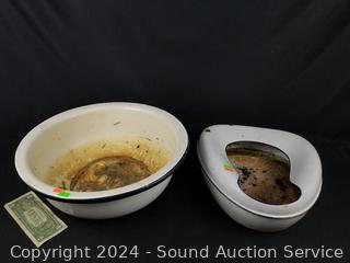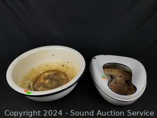 Lot #0068: Enamelware Steel Bowl & Bed Pan