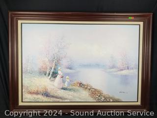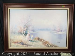 Lot #0265: Original Signed Walton Ladies by the River Oil Painting