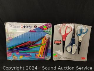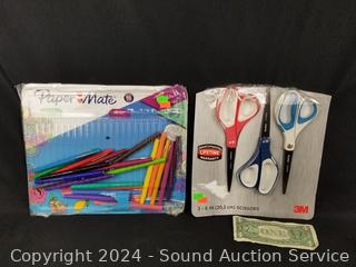 Lot #0310: Pack of 22 Papermate Pens & 3 3M Scissors
