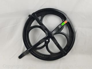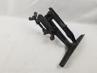 Lot #0194: Vintage 9.5" Jaw Sharpening Vise/Clamp & 12" Cast Iron Pulley Wheel