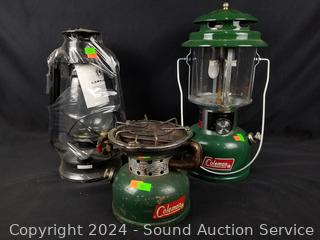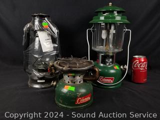Lot #0192: Vintage Coleman Lantern, Burner & Lamplight Barn Lantern