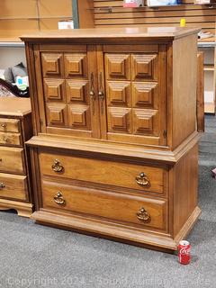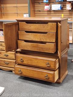 Lot #0005: Vtg. Stanley 5-Drawer Oak Dresser
