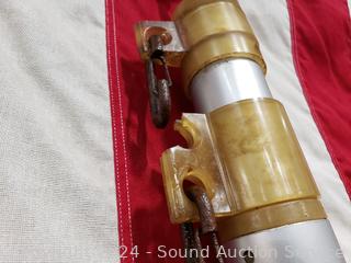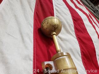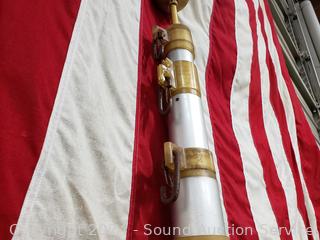 Plastic clasps that hold flag are damaged, locking tab on lower extension is damaged. Various weathering wear.