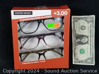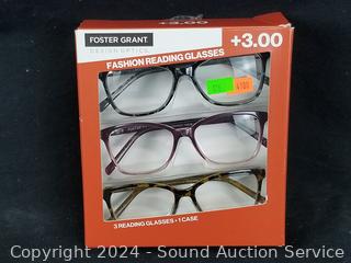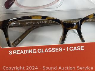 Lot #0176: 3 Foster Grant Fashion +3.0 Reading Glasses w/Case