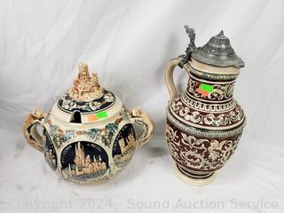 Lot #0117: 4 Authentic German Pottery Steins & Tureen