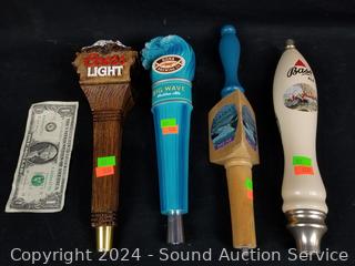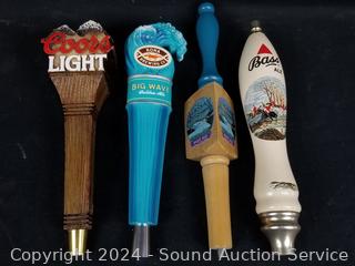Bass Ale, Coors Light, Kona Brewing Big Wave Golden Ale, Alaska Pale Ale (has some minor scuffs, wear to finish). Approx. 11" to 13" long. Don't see any other major issues.