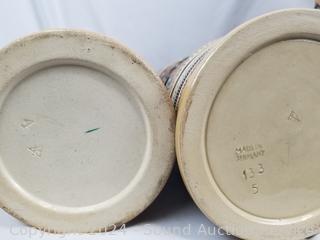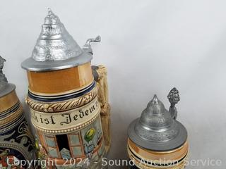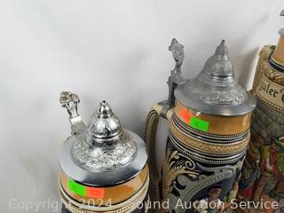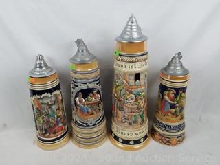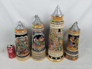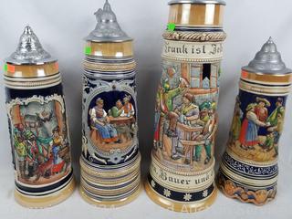 Lot #0092: 4 Large Authentic German Pottery Hand Painted Steins