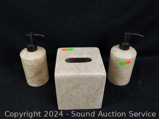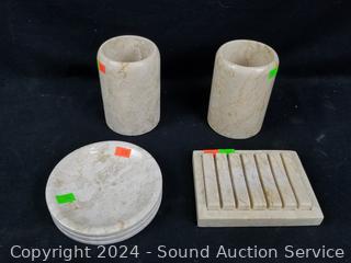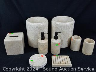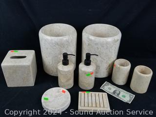 Lot #0170: 9pc Travertine Stone Bathroom Accessories