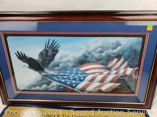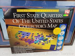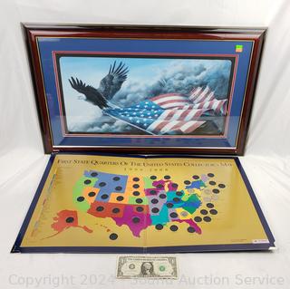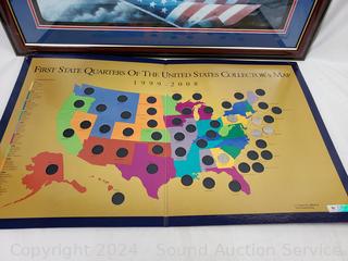 Lot #0205: American Flag Eagle Print & US First State Quarters Collectors Maps