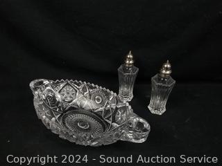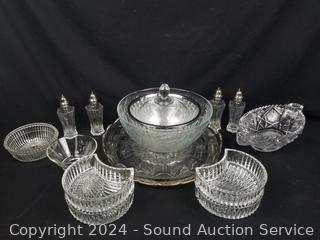 Lot #0163: Assorted Crystal & Clear Glass Table & Service Ware