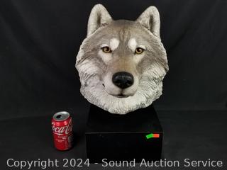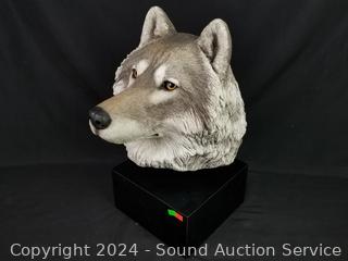 Lot #0047: Sandicast Original Fine Detail Wolf Bust Sculpture w/Stand
