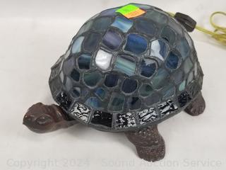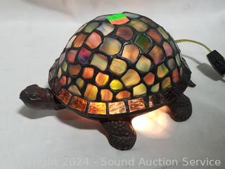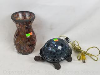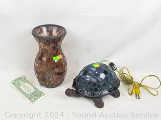 Lot #0098: Stained Glass Turtle Elec. Lamp & Mosaic Glass Vase