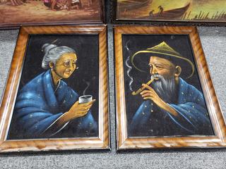 Lot #0123: 4pc Original Vintage Asian/Oriental Artwork