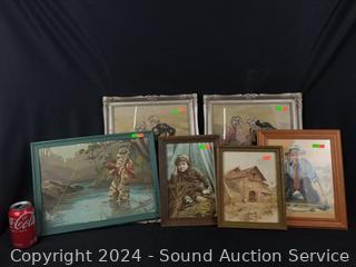 Lot #0134: 6pc Vintage Original, Prints & Needlepoint Artwork