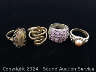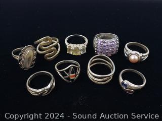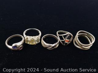 1 unmarked, tested silver, band is broken. Others marked 925/sterling. TW:48.76g.