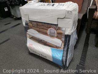 Sealed in original packaging. Don't see any issues. 4" foam mattress. Holds up to 250lb. Approx. 72" x 30". ATTN: Stock images, when included, are representations of the items and are not guaranteed to be exactly what is in the lot.