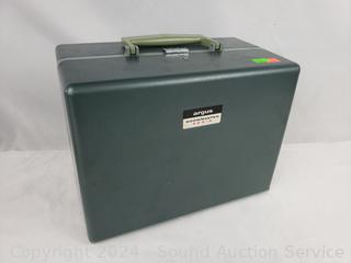 Appears to be functioning as intended. Silver ring around lens is loose, comes with manual.