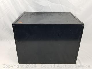 Ball bearing drawer guides. Appears to be mostly empty. 11" x 15.5" x 11.75".
