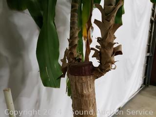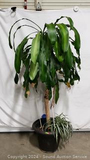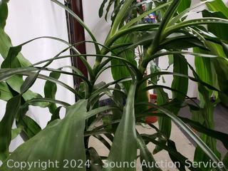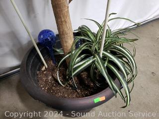 Lot #0026d: Live Potted 5ft Palm Tree Plant w/2 Glass Water Globes & Other Plant