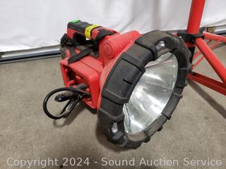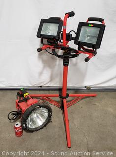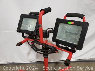 Lot #0252: Red Adjustable Height Tripod Dual Light Halogen Work Light & Search Light