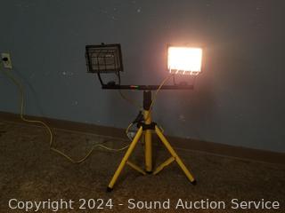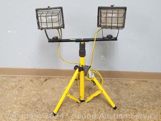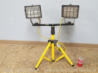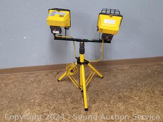 Lot #0251: Yellow Adjustable Height Tripod Dual Light Halogen Work Light