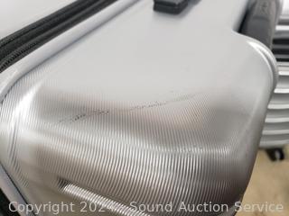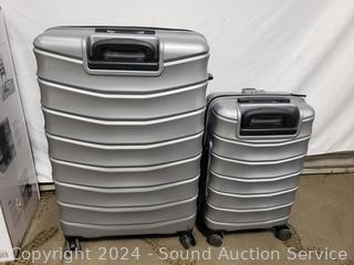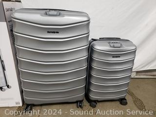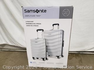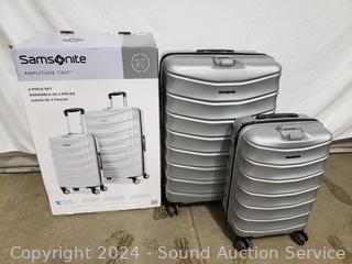 Lot #0302: 2pc Samsonite Amplitude Two Silver Spinner Luggage Set